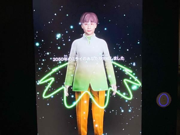 2階に移動すると、測定した健康データをもとに、25年後の自分(アバター)がモニターに映し出されます。