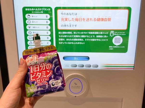 主催者展示の「パーソナルフードスタンド」では、AIが一人ひとりの体の状態に合わせてパーソナルなアドバイスをしてくれます。現在の健康状態に合った食の提案を受けたあと、「ヘルスケアベンダーマシン」からパーソナルフードが出てきて、持ち帰ることができます。その日からすぐに実践できるヘルスケアの提案が、とても魅力的です。