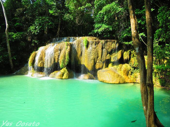 タイ国内で「最も美しい滝」と称される、カンチャナブリ県のエラワン国立公園にあるエラワン滝(Erawan Waterfall)。