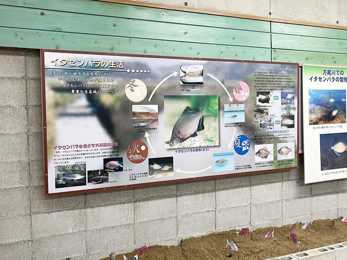 氷見市の川に生息する約30種類の淡水魚が展示されており、特に国の天然記念物である「イタセンパラ」が目玉です。