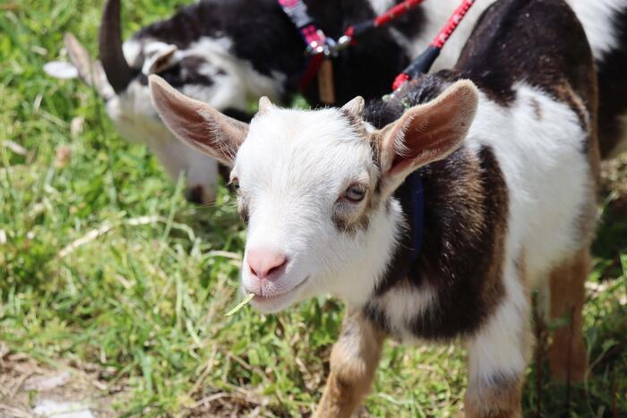 5月現在、4月に生まれた赤ちゃん子ヤギたちがデビューしています。大人のヤギは「メェ〜」と鳴くことはとっても有名ですが、赤ちゃんは何と鳴くでしょう。赤ちゃんヤギの鳴き声はなんと「マー!」。