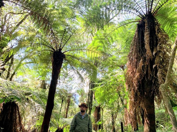 アンボロ国立公園内の巨大なシダの木を見るハイキングツアー。一年に数ミリ程度しか成長しないため、写真にあるような大きさに成長するには数百年かかるのだそう。