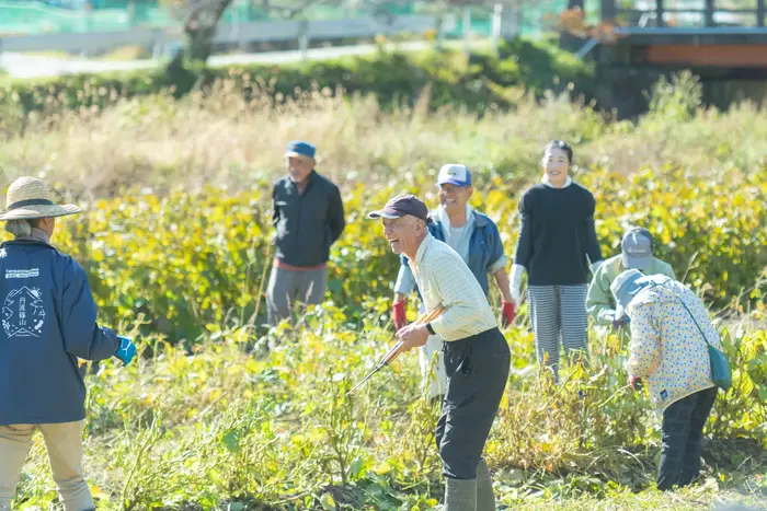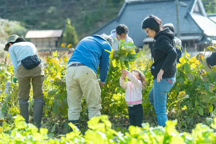 特におすすめなのは、地元の人と一緒に田畑で作業をし、収穫した食材を使っておにぎりやお鍋を作る体験です。