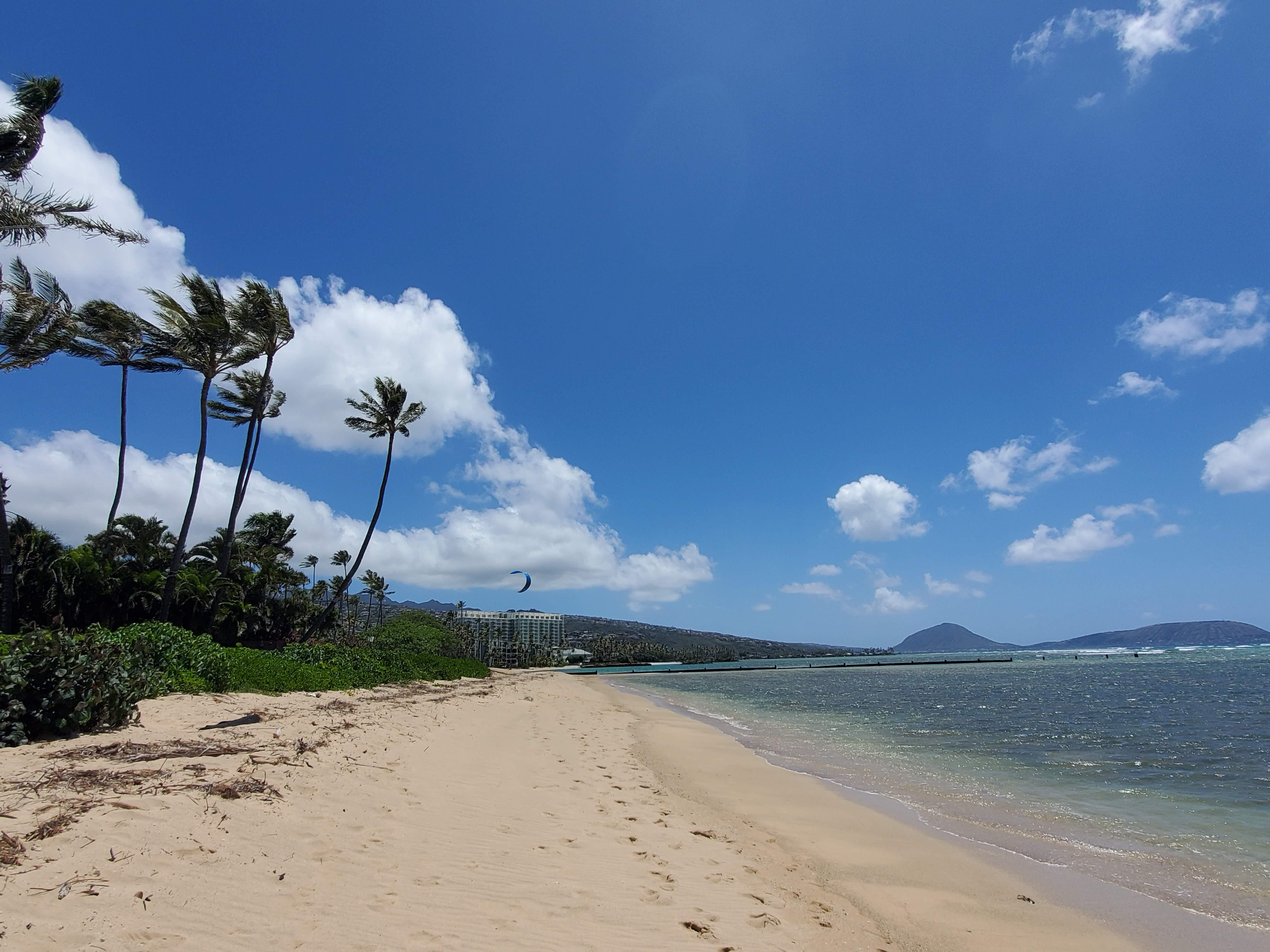 <波は比較的穏やかで、のんびり過ごすのにぴったりなカハラ・ビーチ(Kahala Beach)>
