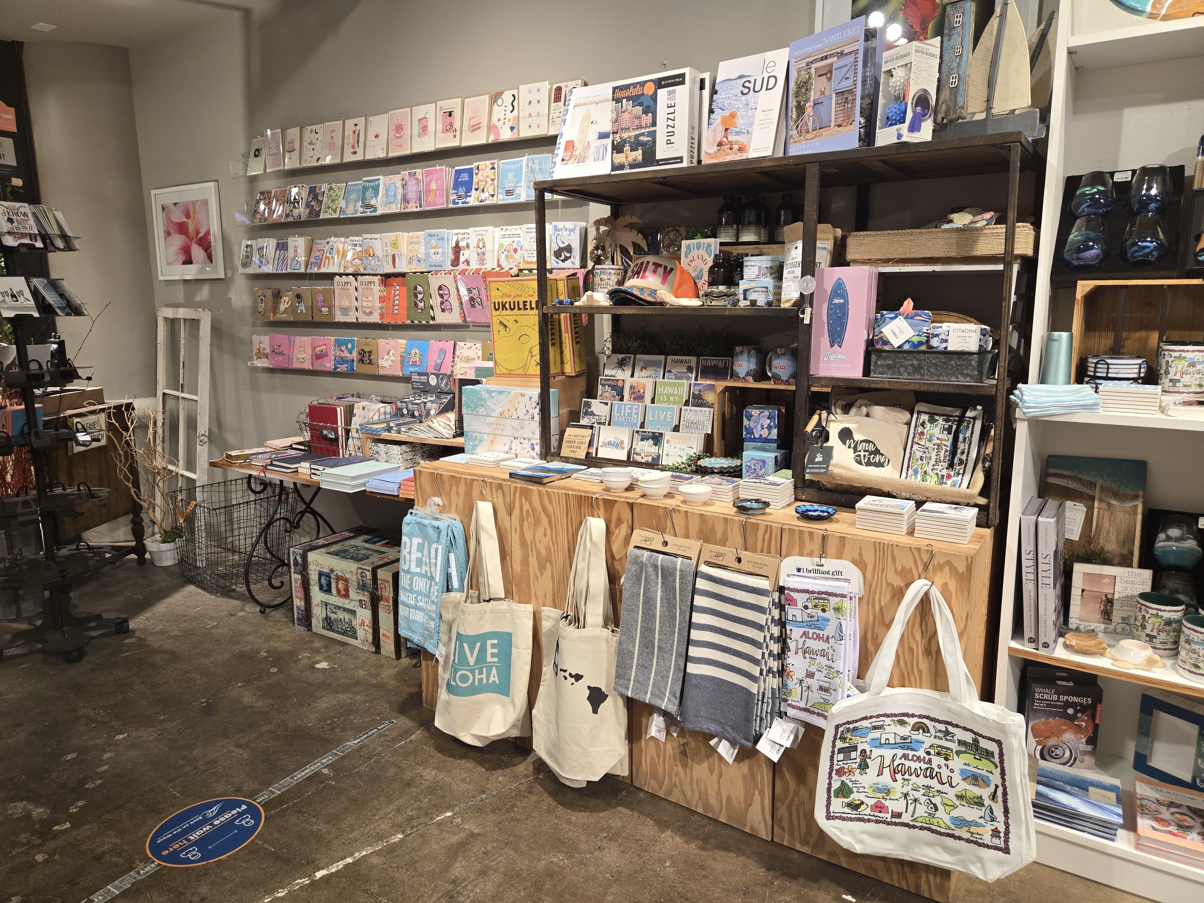 インテリア雑貨から文房具、ハワイのデザイナーによるジュエリー、リファイナリーのオリジナル商品なども取り揃えていて、ちょっと気の利いたギフトが見つかるお店です。
