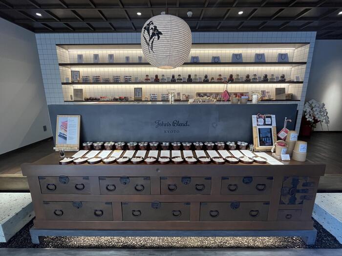 「John's Blend KYOTO」のコンセプトは「香りと和の融合」。店内には大型の和箪笥や京都の老舗「小嶋商店」が手がけたオリジナル京提灯が飾られていて、京都らしい雰囲気の中にオリジナルのフレグランス商品が並んでいます。