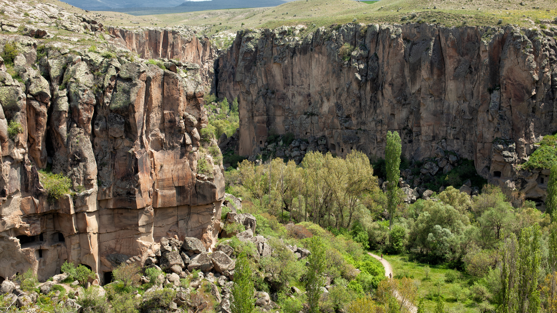 ギョレメ野外博物館の見学を終えたら、チャオシン村までハイキングをしてみましょう。野外博物館の北側には、ソードバレー・ローズバレーが広がっています。
