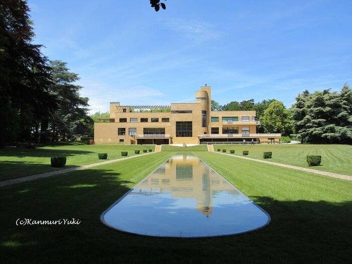 サロンから見る庭園の眺めももちろん美しいですが、私は庭の端まで歩いて行って見るカヴロワ邸の外観が気に入っています。