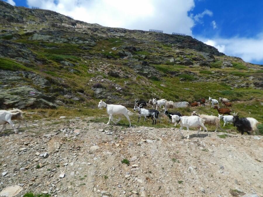 音のする方を見てみれば、スイスで時々見かける黒と白のヤギを始め、色々な毛色のヤギたちが一心不乱に草を食(は)んでいるのが見えました。