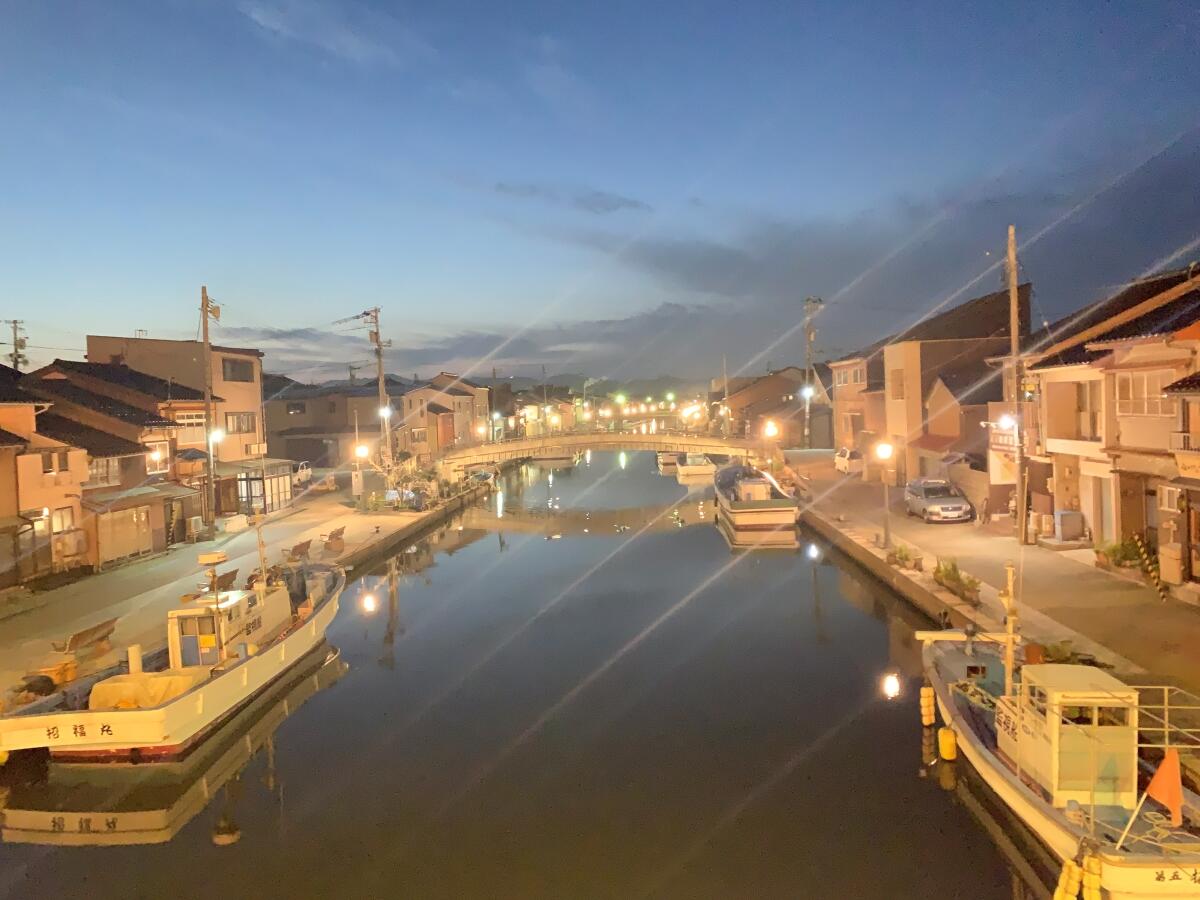 日中は活気ある港町の表情を見せる内川も、夜には静かな水面に街灯が揺れる幻想的な空間に。散策や写真撮影にもぴったりです。