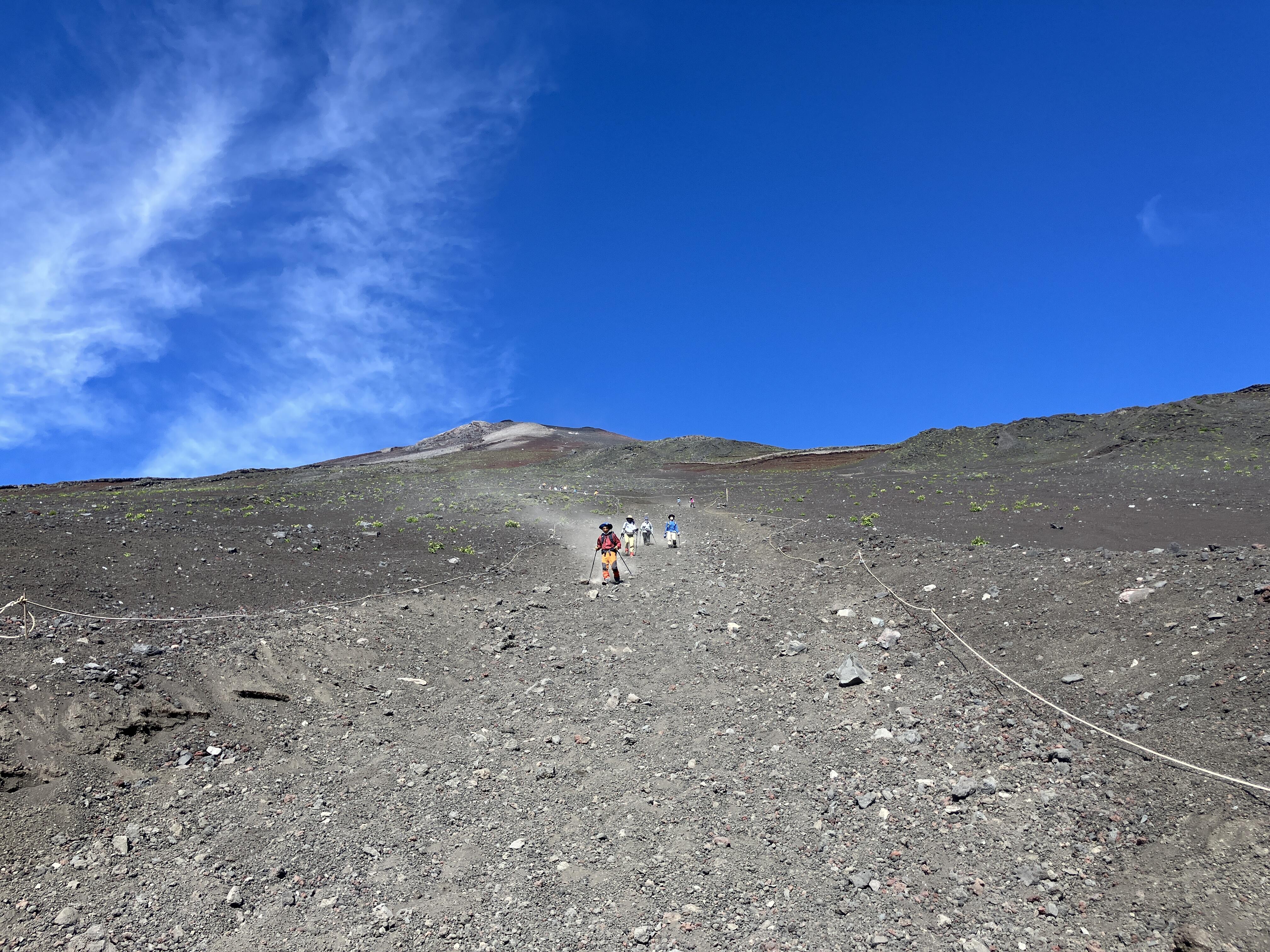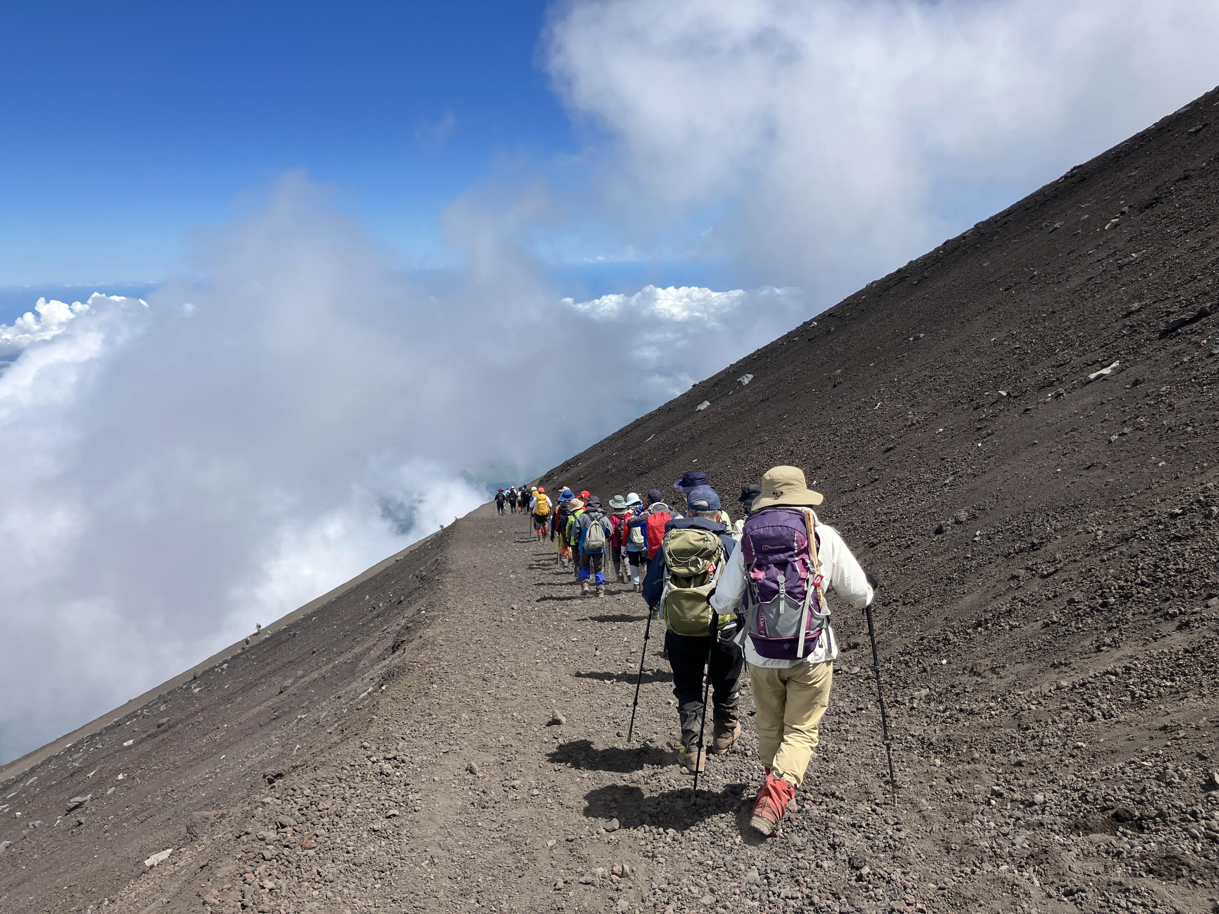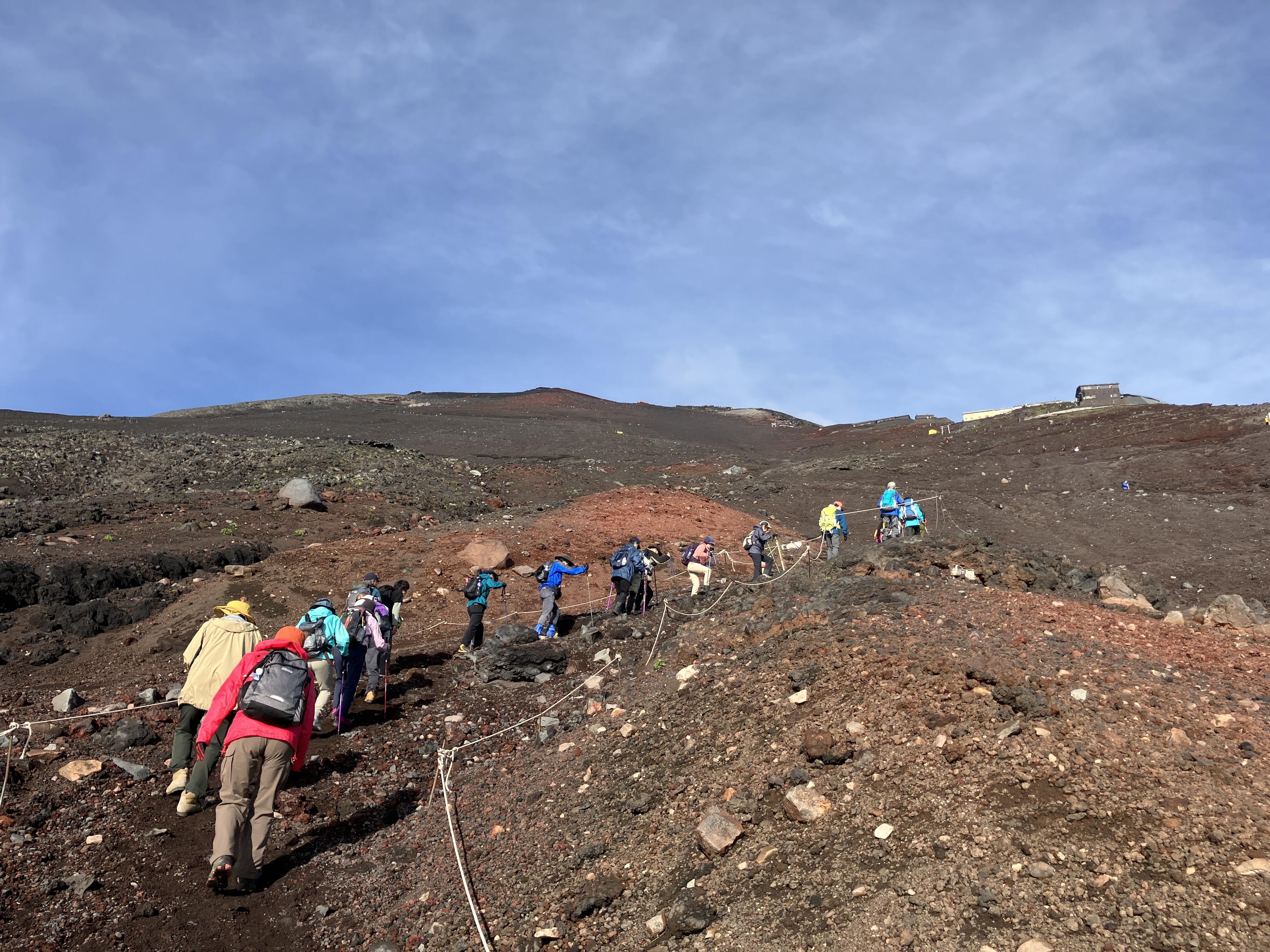 富士山はなかなかの急斜面です。でも、ゆっくり登るのでご安心ください。