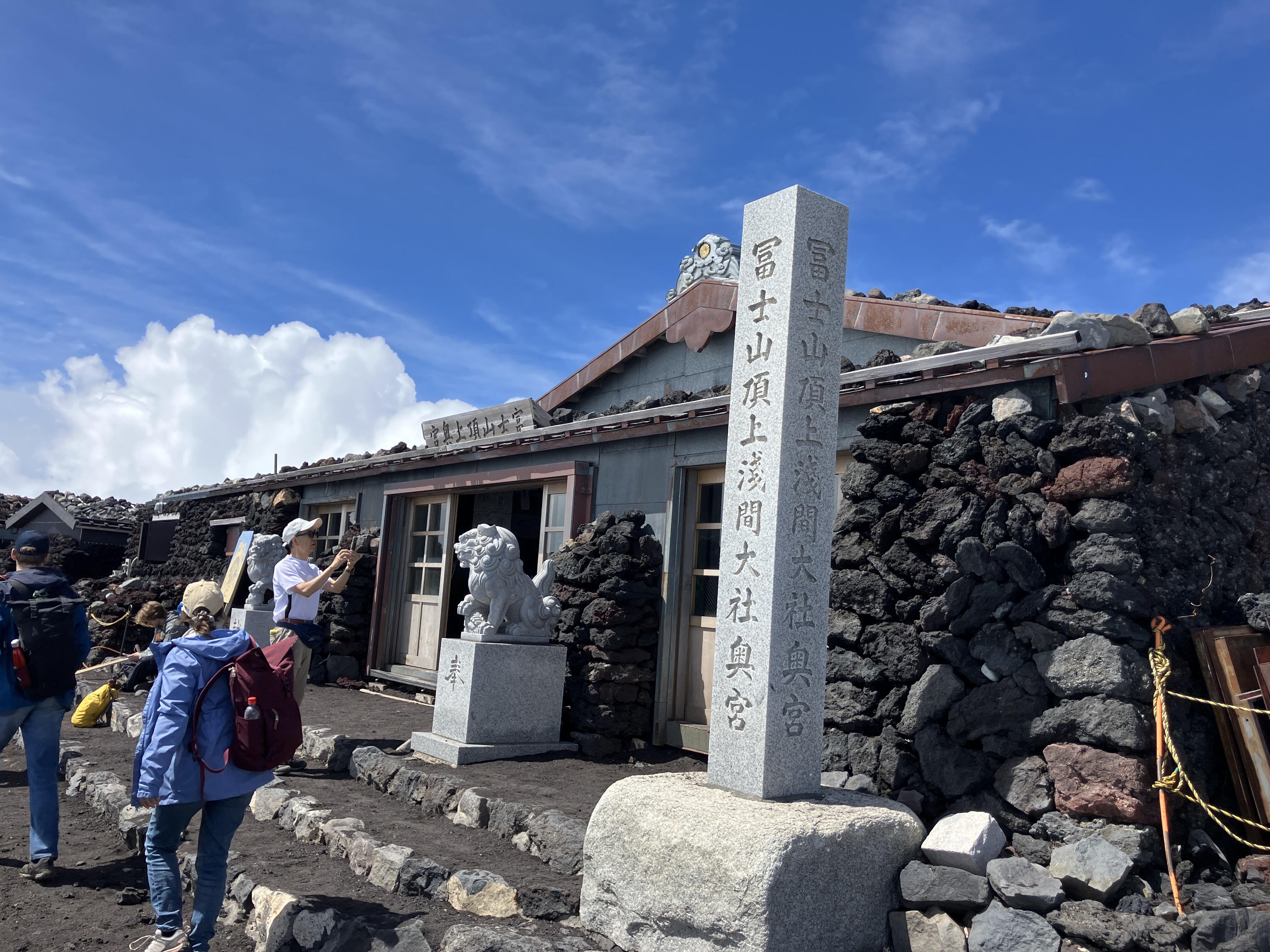 『登頂おめでとうございます!』 ここは須走口の山頂で標高3,710mの久須志神社前です。