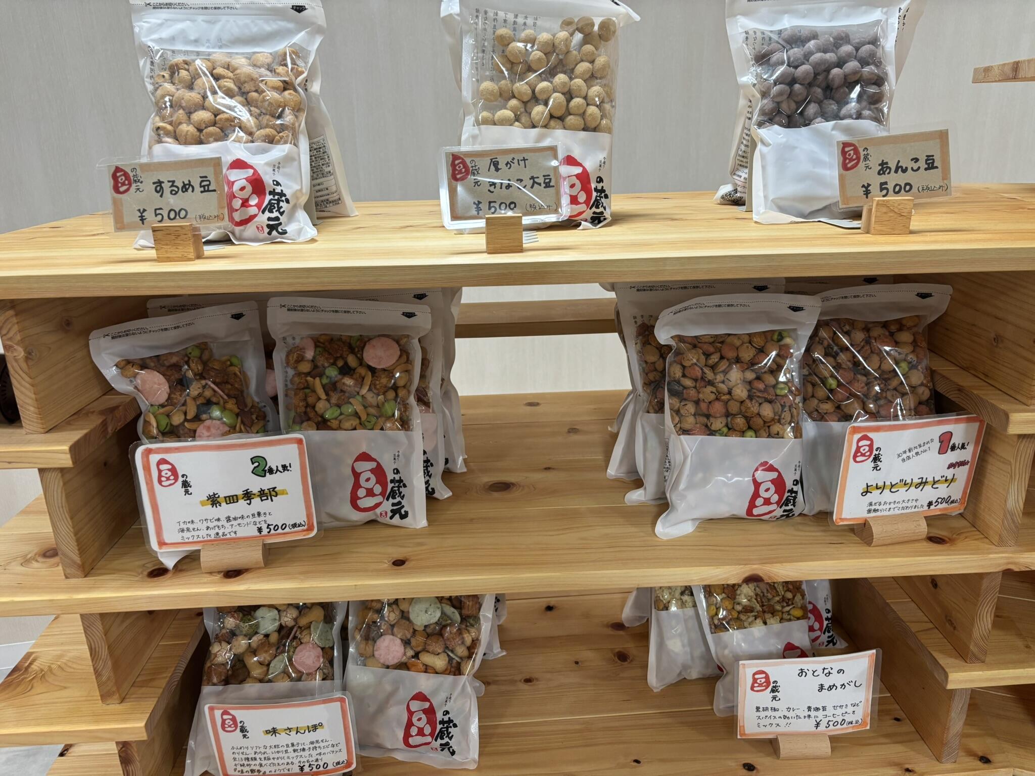 人気のお土産についてモックルステーションの担当者にお話を伺いました。いちばん人気は豆の蔵元さんの豆菓子です。
