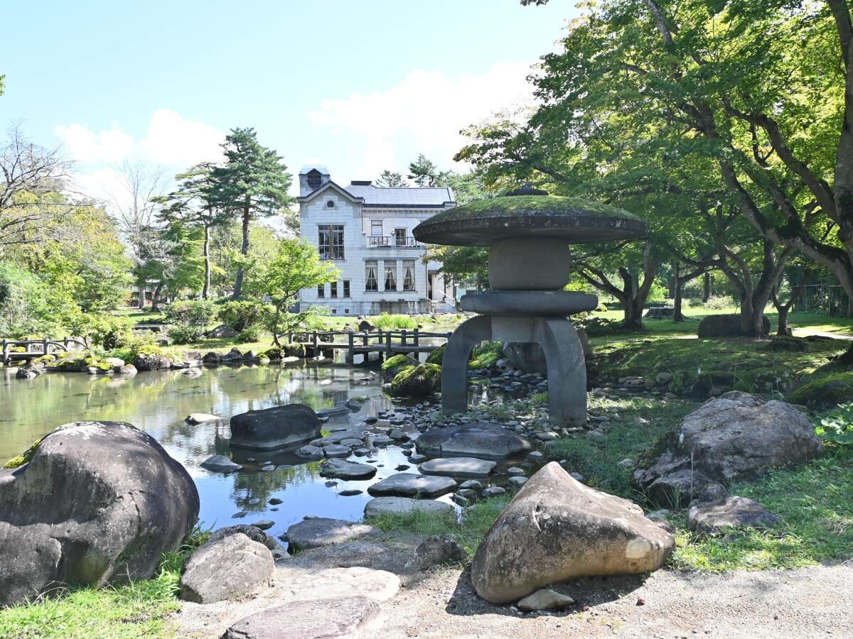 水路は川を、池は海をイメージして造られており、洋館や雪見灯籠も庭の雰囲気に自然に溶け込んでいます。計算し尽くされた美しさと、池田家の想いが込められた特別な空間なんです。