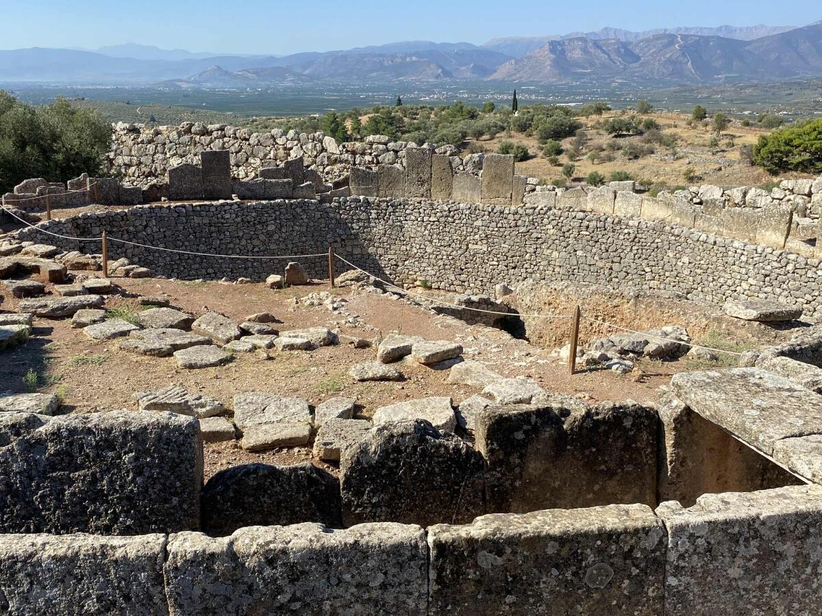 獅子門をくぐってすぐ右手にあるのが、王族の墓とされる円形墳墓群(Circle A)。シュリーマンがあの有名な黄金のマスクを発見したのがこの場所です。