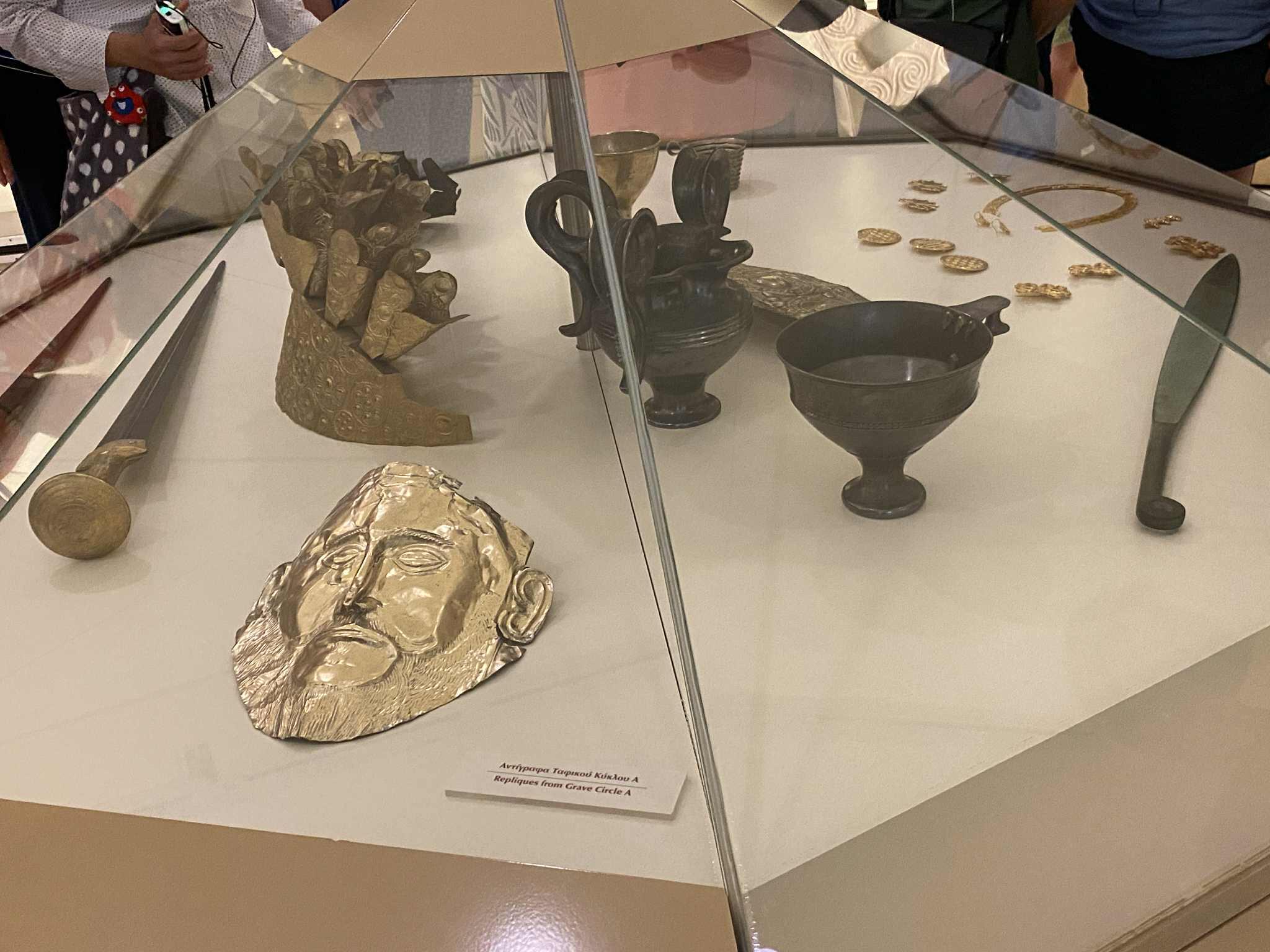 遺跡の近くにある小さな博物館には、発掘された陶器、武器、装飾品などを展示。ミケーネ文明の日常生活や芸術性を理解するのに役立ちます。黄金のマスクのレプリカが展示されていましたが、本物の多くはアテネの国立考古学博物館に展示されています。