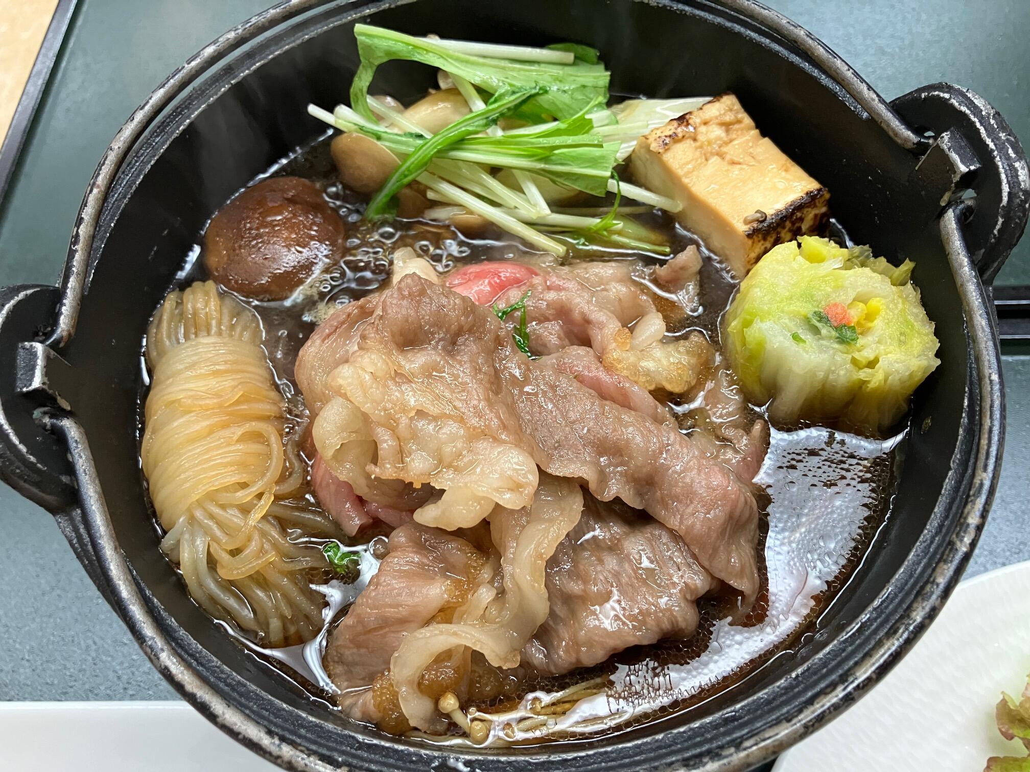 中でも、甲州牛のすき焼きのお肉がとても柔らかくジューシーで、口に入れたとたん溶けていくようで絶品でした。
