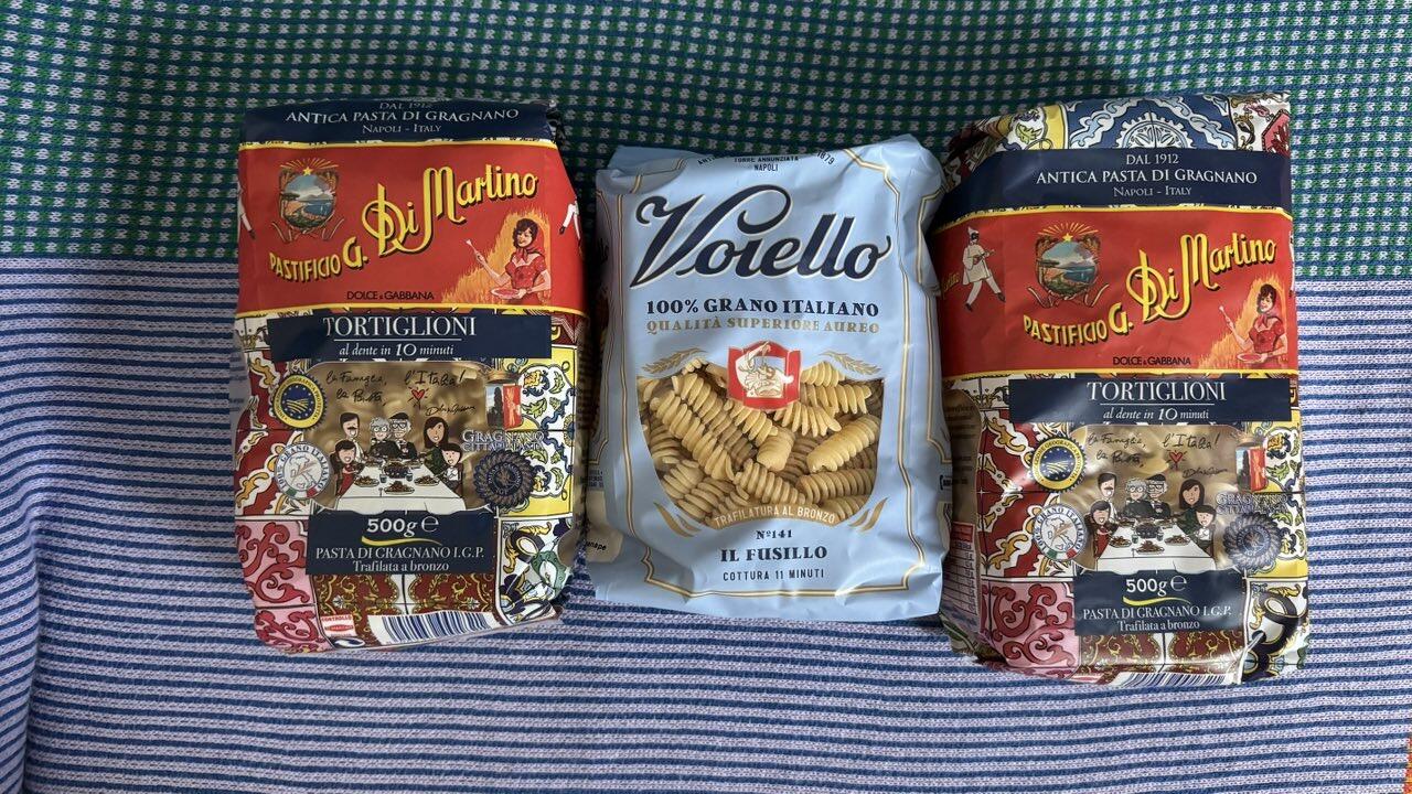 多少、嵩張るもののお値打ち価格で買えるパスタ各種。お料理好きさんに喜ばれます。私はパッケージの良さも選ぶポイントにしています。例えばドルチェ&ガッバーナとコラボしたDi Martino(ディ・マルティーノ)のパスタはソースに絡みやすく美味しく、「ドルガバのパスタ」と紹介すると喜ばれます。
