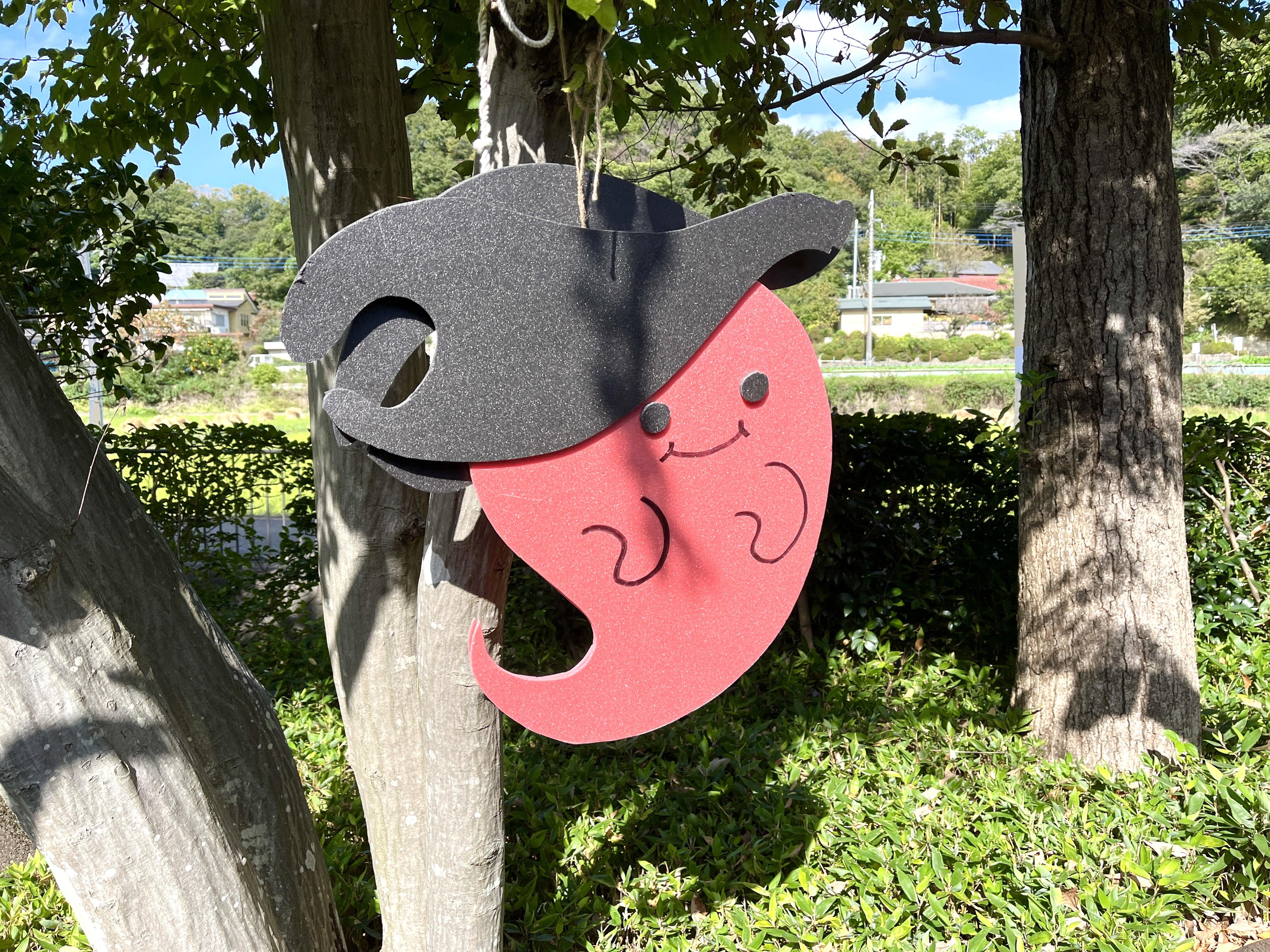 <マルシェのゆるキャラ?が出迎えてくれる。手作り感満載。>