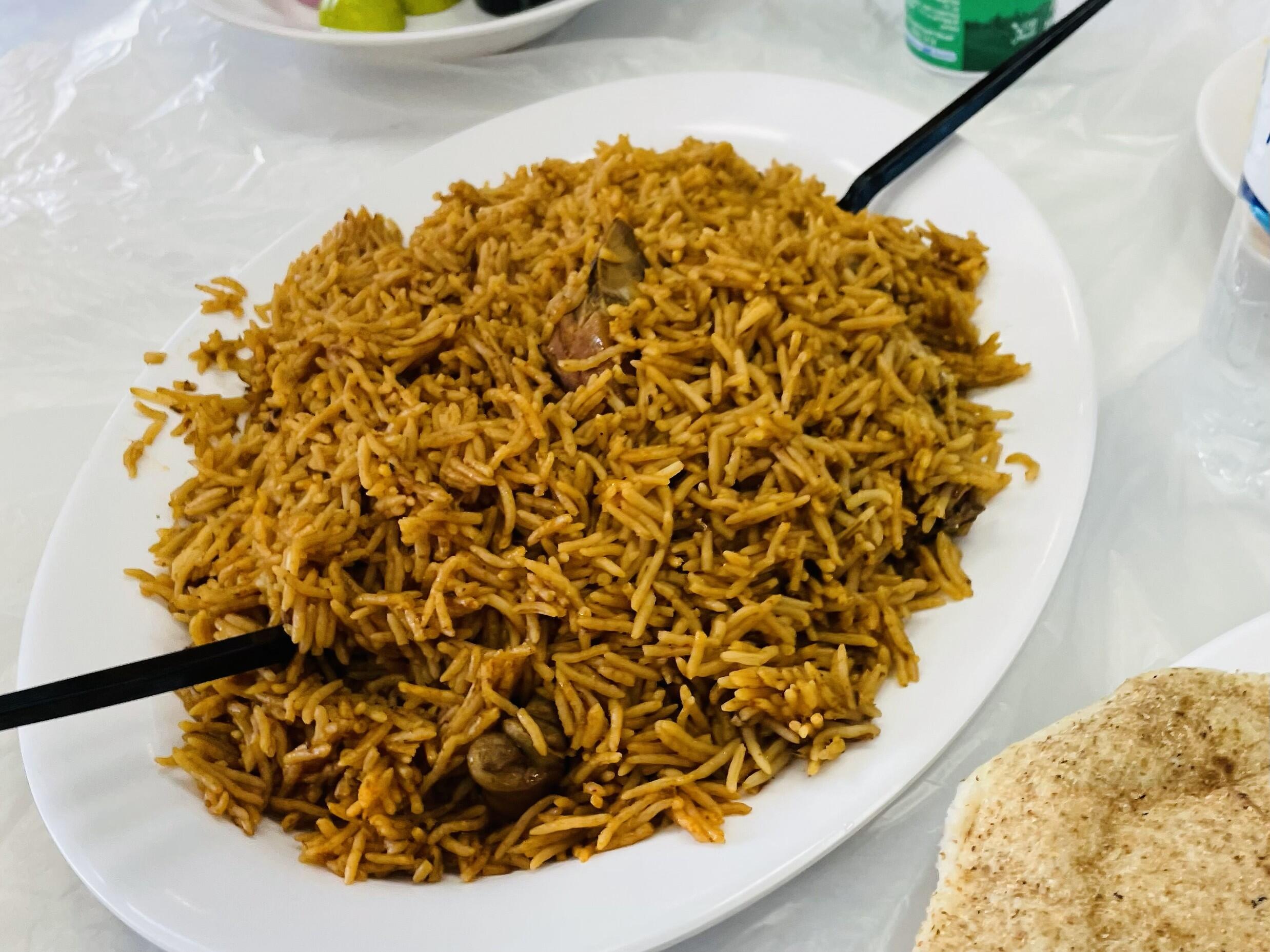 <カブサやマンディは米の量が多く完食が困難な場合、ほとんどのレストランは持ち帰りが可能です>