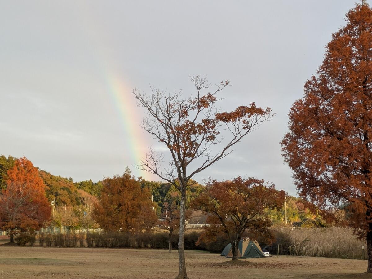 夕方には虹もでて、素敵な紅葉と虹と一緒にキャンプを楽しむことが出来ました。