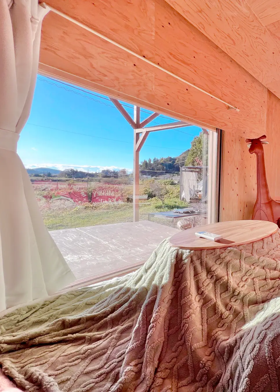 古民家やテント、住箱(snow peak檜トレーラーハウス)など、さまざまな宿泊スタイルで、温かいこたつにくるまりながら、冬のひとときを楽しむことができます。