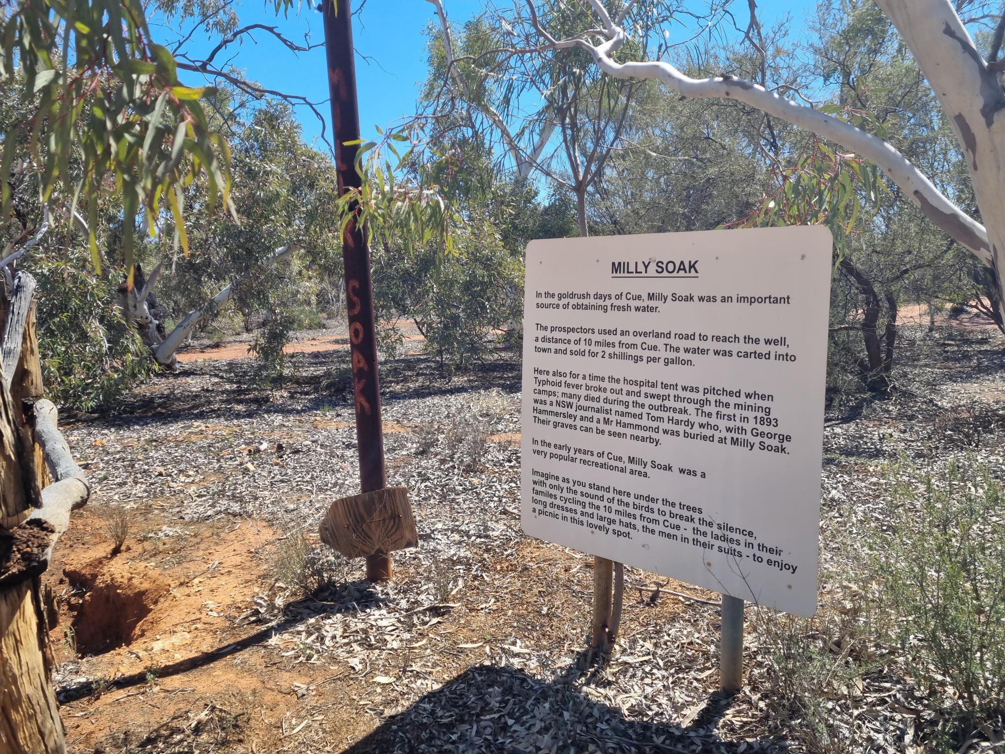 キューから北に16km離れたところにあるMilky soakという井戸です。人々はここまで水を買いに来ていたのだとか。