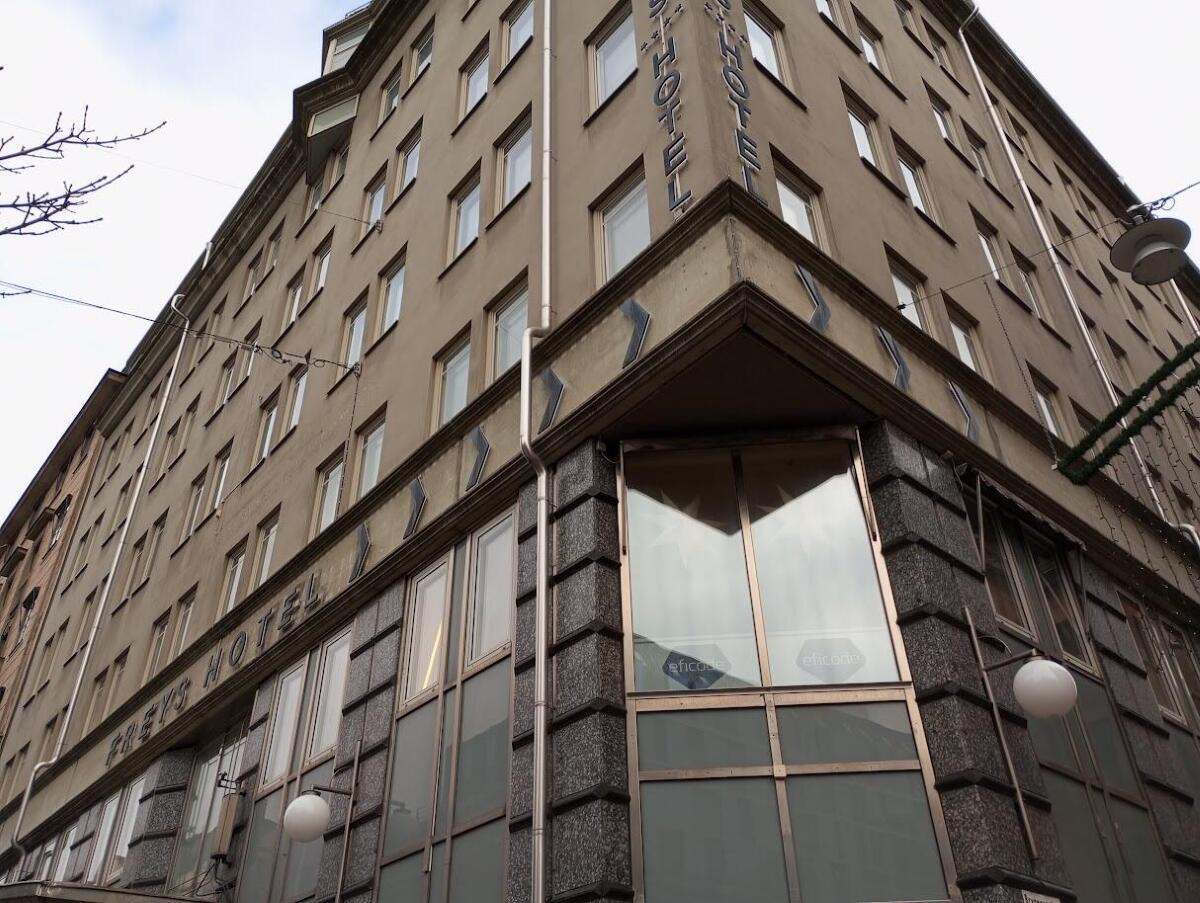 有名なチェーンホテルと並んで駅前に聳え立つFreys Hotelはストックホルムで最も古いホテルの一つ。