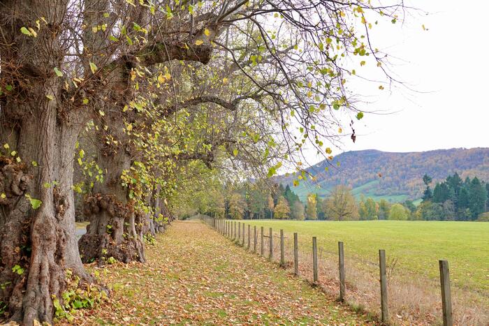 このお城は門からお城につながる長い並木道にまず圧倒されます。