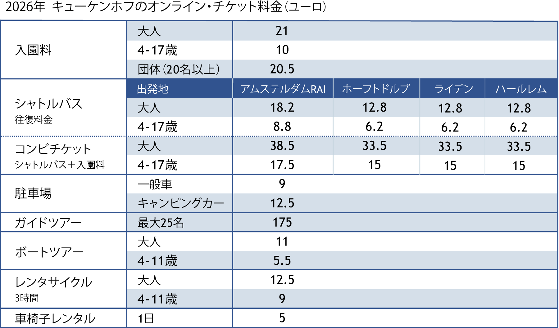 なお、2026年は工事の影響で、スキポール空港発のシャトルバスは運行されませんのでご注意ください。スキポール空港に最も近い出発地はホーフトドルプです。