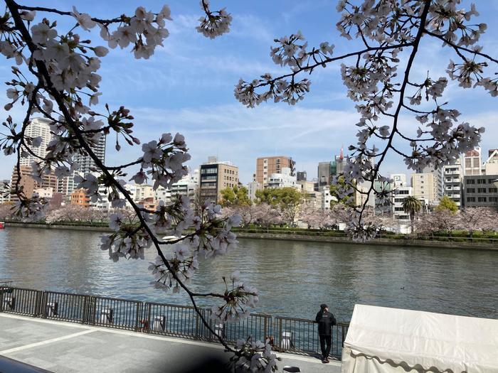 大阪的河岸現在也開始櫻花盛開,正是散步的好季節。